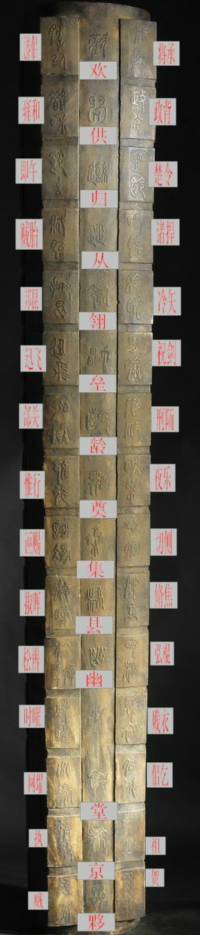 馬賀山先生,對蒼頡一眾,在2米高一玉琮上,解碼了所刻的陽刻文字: